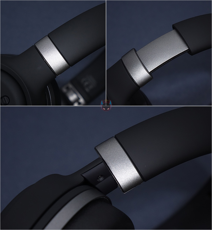 하이퍼엑스 클라우드 오르빗 S(Cloud Orbit S) 게이밍 헤드셋 외형을 살펴보면, 전체적으로 블랙색상 계열에 포인트로 실버색상을 적용하고 있으며, 헤드밴드부분은 기존의 자사 제품들과 달리 좀 곡면스러운 마감을 가지고 있습니다. 밴드 바깥쪽에는 기존 제품들처럼 하이퍼엑스 로고를 새겨놨는데, 단순 인쇄식이며, 안쪽은 편안한 착용감을 위해 인조가죽과 함께 쿠션처리를 해놨죠. 밴드 왼쪽에는 오디지(Audeze) 로고도 표시를 해놨으며, 당연히 밴드 길이조절도 가능하고, 최대 35mm까지 늘릴 수 있습니다. 또한, 이어-컵과 밴드 연결부위는 -10~90˚가량 회전할 수 있습니다.