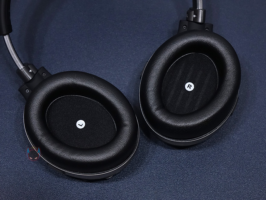 그리고, 이어-컵 안쪽 이어-패드부분은 인조가죽으로 쿠션처리를 해놨으며, 귀를 완전히 덮어주는 밀폐형으로 외부로 사운드노출이 최소화 되도록 해주고 있습니다. 또한, 이어-패드 안쪽 필터망에는 좌우 구분표시도 해놨고, 내부에는 이 제품의 특징 중 하나인 오디지(Audeze)의 평판형 마그네틱 드라이버 유닛이 탑재되어 있습니다. 평판형 유닛은 일반적으로 많이 보는 볼록한 형태의 다이나믹 유닛보다 큰 진동판을 가질 수 있어서, 클라우드 오르빗 S(Cloud Orbit S)에는 100mm 크기가 탑재되어 있습니다. 현재 다이나믹 유닛의 게이밍 헤드셋 제품들이 40~60mm 크기를 갖는 것보다 훨씬 큰 크기를 가지고 있어서, 사운드 진동의 왜곡이 없고, 더 선명하고 정교한 사운드를 들려줍니다. 물론, 일반적으로 무게가 좀 더 나간다는 단점이 있지만, 이 클라우드 오르빗 S(Cloud Orbit S) 게이밍 헤드셋은 약 360g 무게로 다이나믹 유닛의 게이밍 헤드셋 제품들과 100g도 차이가 나지 않아서, 무겁다라는 느낌은 크게 들지 않습니다.