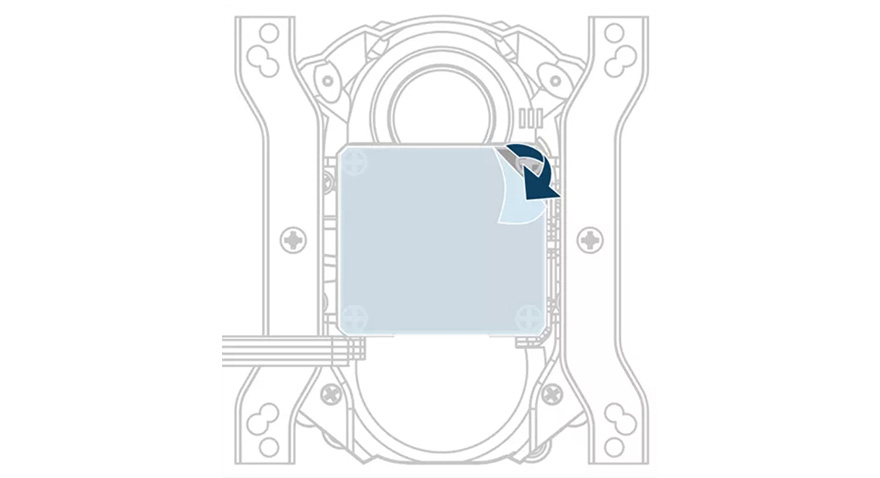 그다음으로 이제 워터블록에 마운팅 클립을 장착해줘야하는데, 설치가이드에는 이미 장착된 상태에서 앞서본 개봉시 부착되어있는 보호비닐을 제거하라는 설명만 되어있습니다. 인텔용과 AMD용 마운팅 클립은 쉽게 구분이 되는데, 마운팅 클립을 체결해주는 나사에 대한 설명이 없습니다. 초보자일경우 이부분에서 헤매일 수 있는데, 마운팅 클립 체결 사용되는 나사는 제공되는 나사들 중 똑같은 사이즈로 2개만 들어있는 나사가 있습니다. 바로 그 나사를 사용하면 되겠습니다. 물론, 필자처럼 쿨러를 자주 교체하거나 쿨러 장착을 몇 번 해본 소비자라면 쉽게 파악할 수 있는 부분입니다. 최종적으로 마운팅 클립까지 장착한 워터블록을 메인보드에 장착한 스탠드-오프에 올려서 너트로 체결하면 마무리가 되는데, 이때 워터블록 방향은 전원부에 쿨링효과를 주는 VRM 팬 위치를 9시나 12시 방향으로 해서 체결하면 되겠습니다. 전체적으로 장착은 크게 어려움부분이 없습니다.