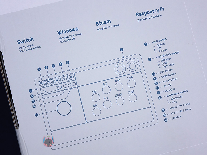 직접 8Bitdo V3 Arcade Stick 을 사용해보면, 모드 스위치를 닌텐도 스위치(S)로 할지 PC용(X)으로 사용할지 선택하면 자동으로 전원이 켜집니다. 그리고, 아래에 LED 인디케이터를 통해 배터리 상태도 확인할 수 있죠. 모드 선택과 함께 전원이 켜지면, 컨트롤 버튼에도 LED로 버튼 표시가 나오는데, 모드에 따라 버튼 표시가 다릅니다. 물론, 실제적인 컨트롤 버튼설정은 게임내에서 다시 설정할 수 있죠. 그리고, 동글이 방식의 2.4GHz 외에도 블루투스 연결방식도 가능한데, 연결방식은 다른 제품들처럼 페어링 방식이라 어렵지 않습니다.