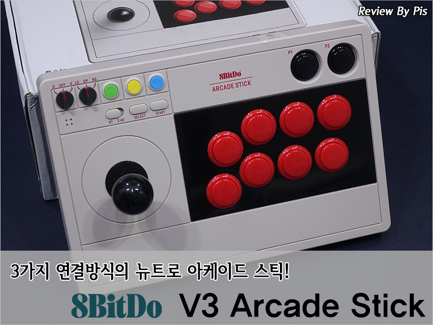 요즘 레트로 감성을 새롭게 디자인한 제품들을 뉴트로라고 부르고 있죠. 특히, 콘솔기기 제품에서 이런 뉴트로 제품들을 많이 찾아볼 수 있는데, 그시작은 닌텐도 스위치라고 볼 수 있죠. 조이스틱 브랜드로 잘 알려진 8Bitdo 역시 인기의 시점은 바로 닌텐도 스위치 조이패드를 레트로감성으로 내놓기부터라고 할 수 있으며 대표적인 모델이 바로 SN30 시리즈죠. 하지만, SN30 시리즈는 일반적인 조이패드 형태이고, 대전액션 같은 혹은 오락실에서 볼 수 있는 아케이드 스틱 제품도 8Bitdo에 뉴트로 감성 제품이 있으니 바로, V3 Arcade Stick 입니다. 물론, 정식명칭은 그냥 Arcade Stick이라고 부르죠. 아무튼 8Bitdo의 유일한 아케이드 스틱이자 뉴트로 감성의 V3 Arcade Stick을 이번 시간에 한 번 살펴보도록 하겠습니다.