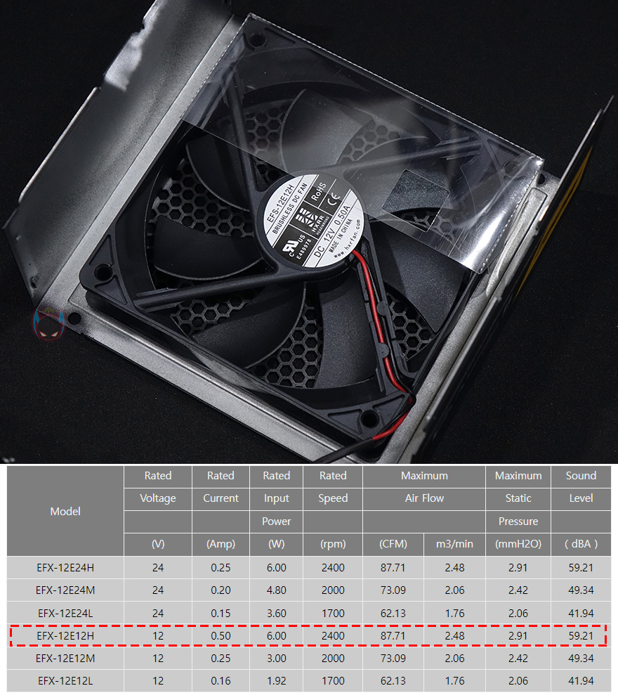 그리고, 케이블이 기본연결된 방식의 마이크로닉스 클래식2 80Plus 골드 파워서플라이의 전력효율은 실제 80Plus 홈페이지에 등록된 정보로 확인해보면 50% Load 상황에서 최대 92.78%, 평균 91.65%의 전력효율을 가지고 있음을 확인할 수 있습니다. 골드등급을 받을 수 있는 효율이죠. 참고로 750W보다는 650W가 조금 더 효율이 높습니다. 끝으로, 마이크로닉스의 가장 대표적인 특징인 PC 사용후 전원을 껐을 때 작동하는 파워서플라이 내부 잔열해결 기능인 애프터쿨링이 작동되었을 때 팬 소음을 측정해봤는데, 약 51dB(A) 수준으로 장착된 팬의 최대속도로 작동되면서 신속하게 해결한다라는 것을 알 수 있습니다. 물론, 이정도 소음이면 PC케이스 내부에 장착하고 사용했을 때, 다른 부품들의 팬 소음에 묻히는 수준이라 소음 걱정은 할 필요가 없죠.
