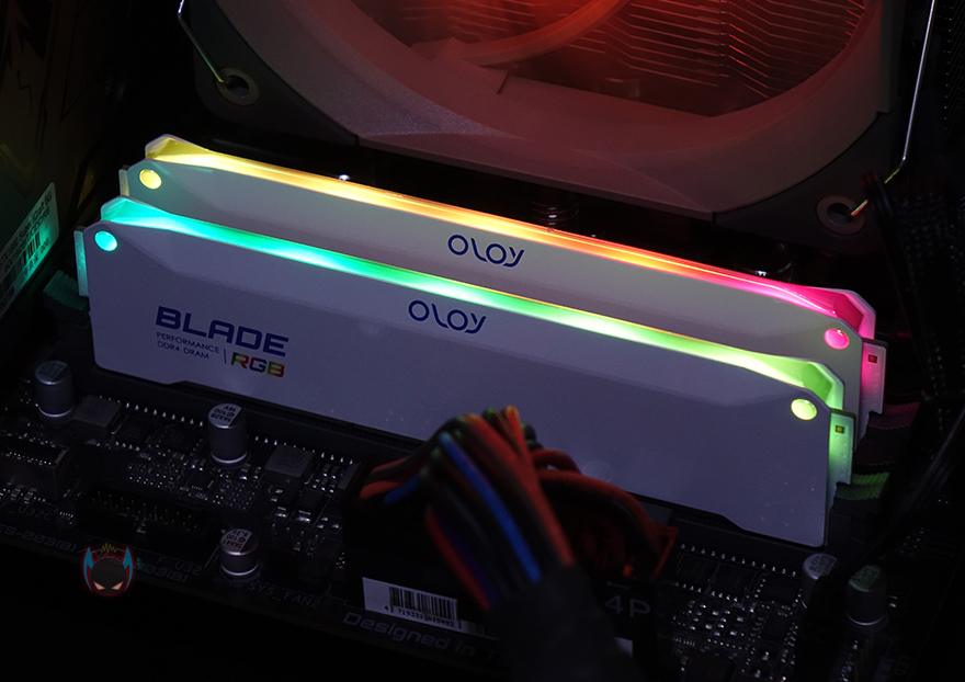 직접, OLOy Blade RGB DDR4 메모리를 사용해보면, 일단 메인보드와 연동하기 전 기본적으로 장착했을 시에는 각기 다른 색상으로 점등되며 작동되는 것을 확인할 수 있지만, 메인보드의 RGB 연동 프로그램을 통해 메인보드의 RGB 효과로 동일하게 작동시킬 수 있습니다. 필자의 경우 기가바이트 메인보드를 사용했으면, 기가바이트의 RGB Fusion 2.0을 통해 함께 연동되는 것을 확인할 수 있죠.