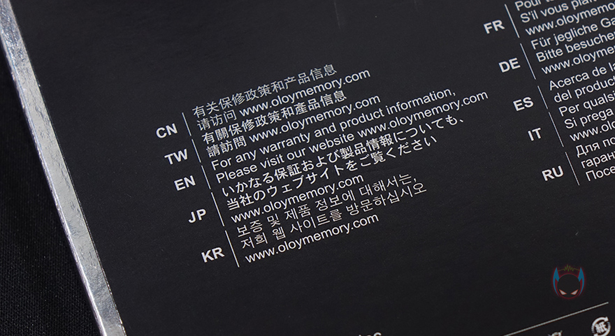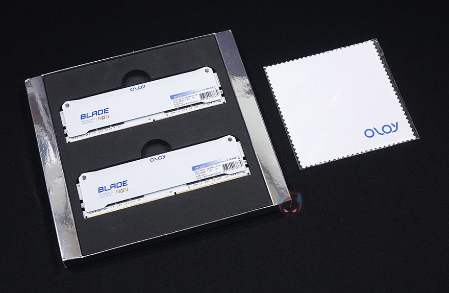 팩키지 포장은 슬라이드 방식으로 겉표지를 벗길 수 있는 방식으로, 겉표지를 벗기면 내부에 스펀지 포장재-틀에 고정된 Blade DDR4 메모리를 확인할 수 있으며, OLOy 로고가 새겨진 클린-천도 제공해주고 있습니다. 클린-천이 일반적인 메모리 제품들에선 보기드문 제공이라고 할 수 있죠.
