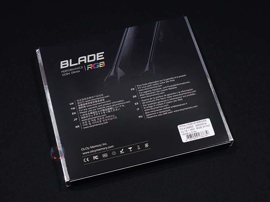 제품팩키지는 박스형으로 먼저 나왔던 제품들보다 좀 더 고급스러운 포장을 하고 있습니다. 이전 제품들은 박스를 개봉하지 않아도 일부 내부에 포장된 제품 실물이 노출된 형태였죠. 하지만, 이번 제품은 박스전체까지 비밀 밀봉을 시작으로 외부 노출된 제품 실물도 없습니다. 다만, 전면에 제품 이미지를 보면 Blade가 블랙과 화이트 2가지 색상으로 나왔다라는 것을 쉽게 짐작할 수 있고, RGB 라이팅효과도 메인보드 4대 메이저 브랜드를 모두 지원한다라는 것을 확인할 수 있죠. 박스 후면에는 한국어를 포함해 자세한 정보를 위해 홈페이즈 접속을 유도하는 문구를 담고 있습니다.