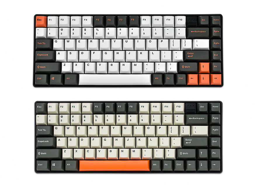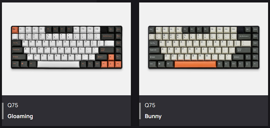 미스텔 Q75 키보드를 살펴보면, 작년에 나왔던 풀-배열의 X-VIII 모델처럼 이번 모델도 Gloaming 색상을 포함해 Bunny 색상과 구분해 2가지 컬러로 출시되었습니다. 그리고, 전체 키 수는 83키를 가졌는데, 전형적인 87키의 텐키리스에서 조금 더 사이즈를 줄인거죠. 정확히는 PrintScreen, ScrollLock, Pause 키를 제외시켜서 사이즈를 좀 더 줄인겁니다. 또한, 방금 언급했듯이 이번 Q75는 Gloaming과 Bunny 2가지 컬러로 구분된다고 했는데, 이 외에도 각 모델에 적용된 키-캡의 컬러가 3가지죠.