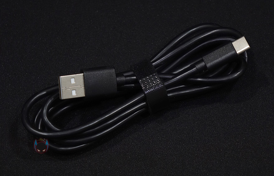 그리고, Q75 키보드는 측면과 밑바닥부부에서 확인했듯이 높낮이조절 받침대가 없습니다. 그래서, 사용자에 따라서 고정 높이에 대한 불편함을 위해 팜-레스트가 기본 제공되고 있는데, 쿠션형태로 손과 손목을 받쳐주는 쿠션부분의 마감처리는 패브릭재질이며, 팜-레스트가 움직이지 않도록 밑바닥부분은 고무패드형태입니다. 일반적으로 키보드 높이가 고정형태이면 팜-레스트를 함께 사용하는 것이 편합니다. 그리고, 유선시 사용되는 USB Type-C 케이블은 키보드연결쪽은 Type-C이고 PC 연결쪽은 Type-A 인터페이스입니다. 참로고 케이블 길이는 약 155cm입니다.