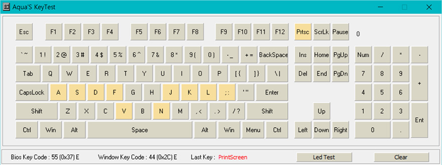 스위치는 앞서 확인했듯이 체리사의 MX 스위치를 사용하고, 총 7가지 타입 중 소비자가 선택할 수 있습니다. 리뷰에 사용된 제품의 스위치는 체리MX 갈축으로 청축과 적축 중간의 특성을 그대로 보여주고, 동시입력 키도 지원되는 것을 확인할 수 있었습니다.