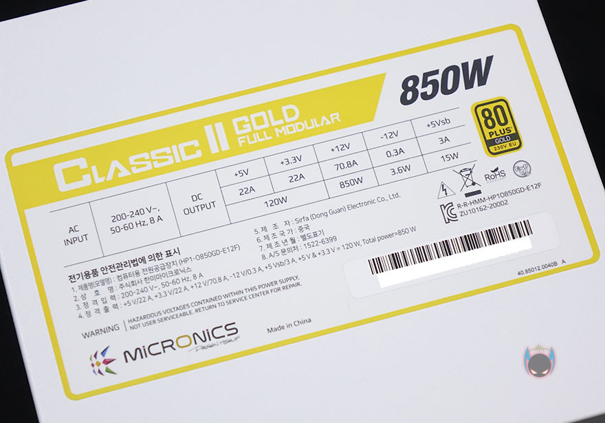 [11번가] 마이크로닉스 Classic II 850W 80PLUS GOLD 230V EU 풀모듈러 화이트