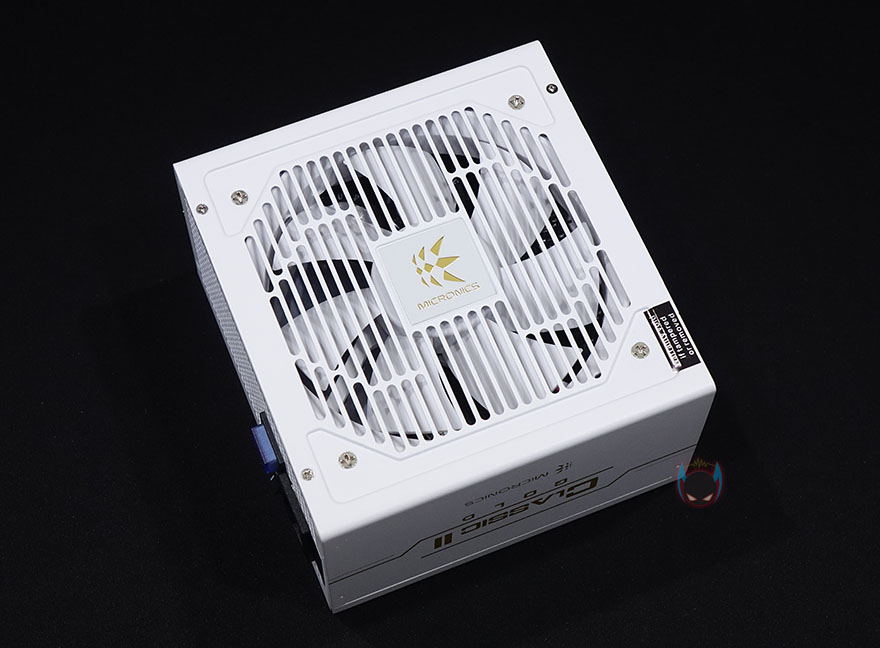 마이크로닉스 클래식2 80PLUS GOLD 230V EU 풀모듈러 화이트 파워서플라이 본체부터 살펴보면, 역시 가장 눈에 들어오는 부분은 화이트 색상부분으로 작년에 먼저 출시한 블랙색상과 완전히 대비되는 색상을 가지고 있습니다. 그리고, 올해부터는 마이크로닉스 로고가 바뀌면서, 이번 화이트 제품에는 바뀐 로고가 적용되어 있죠. 물론, 작년 모델과 마찬가지로 140mm 깊이의 컴팩트한 사이즈도 그대로 유지하고 있습니다.