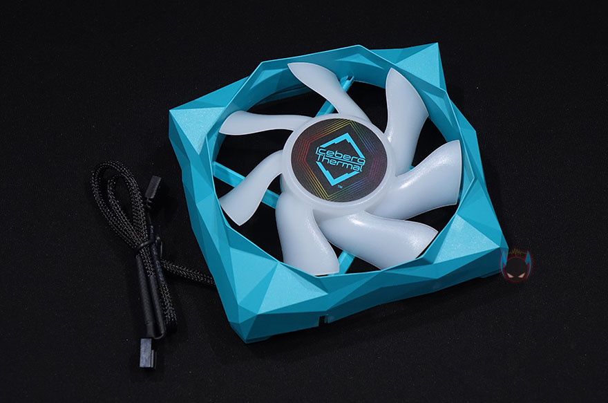 끝으로, IceSLEET X6 쿨러는 앞서 확인했듯이 기본 장착된 팬이 RGB 효과 정확히는 메인보드와 연동되는 5V ARGB를 지원하고 있습니다. 그래서, 메인보드에서 5V ARGB 헤더를 갖추고 있다면, 바로 연결했을 시, 메인보드의 RGB 효과가 연동되는 것을 확인할 수 있죠. 팬 중심부에 LED가 적용되어있고, 블레이드(날개) 색상이 반투명 화이트이기때문에 색상효과는 시각적으로 잘 나타납니다. 물론, 아쉬운 점이라면 5V ARGB 지원이기때문에 메인보드에 5V ARGB 헤더가 없다면 사용할 수 없다라는 점으로, 굳이 사용하고 싶다면 별도의 ARGB 지원 장치를 마련해야하겠습니다.