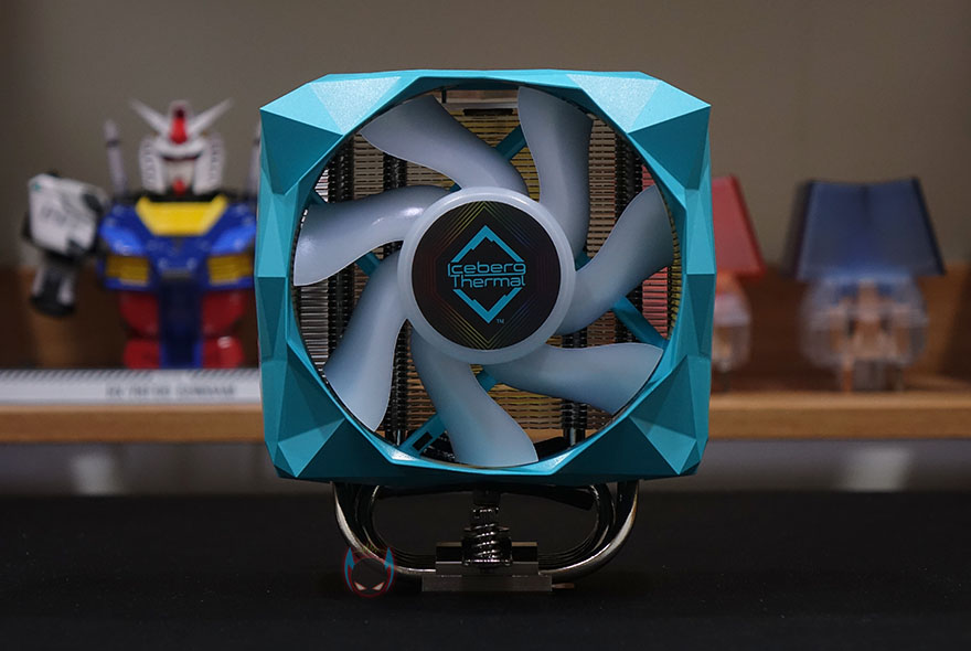 그럼, 본격적으로 Iceberg-Thermal(아이스베르그-써멀)의 IceSLEET X6 CPU쿨러를 살펴보는데, 눈에 가장 먼저 들어오는 부분은 디자인부분으로 실제로 자사에 첫 제품을 출시했을 때 주목을 받은 부분이기도 합니다. IceSLEET X6 쿨러는 덕트형태의 커버를 적용하고 있는데 마치 크리스탈 입체모양 같은 디자인으로 적용되어 있죠. 기존에도 여러 CPU쿨러 제품들이 커버를 적용한 경우가 있었지만, IceSLEET X6는 시선을 사로잡을만큼 독특하다할 수 있습니다. 그리고, 전면에는 120mm 사이즈의 팬이 적용되어 있는데, 뒤에서 작동할 때 확인하겠지만 RGB 라이팅효과를 지원하고 있습니다.