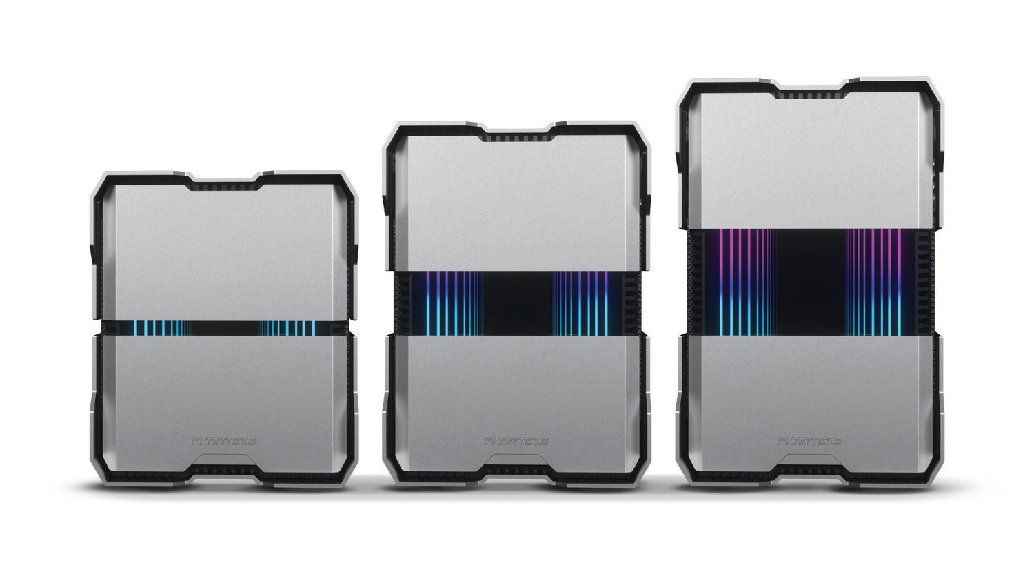 기존의 ITX 케이스는 단순히 소형화를 만드는데 중점을 두었다면, 이번에 Phanteks가 공개한 EVOLV SHIFT XT 케이스는 쿨링시스템 환경에 따라 높이를 확장할 수 있는 케이스입니다. 예를 들어서 로우파일의 공랭 쿨러를 사용한다면 가장 작은 사이즈로 사용할 수 있고, 반대로 수냉 쿨러를 사용한다면 라디에이터 높이를 포함해 높이를 늘릴 수 있죠. 전반적인 케이스 베젤은 알루미늄 재질이며, 측면에 메쉬 디자인과 전면에 RGB 라이팅효과도 적용되어 있습니다. 그리고, 이런 ITX케이스에 사용할 수 있는 SFX 파워서플라이도 신제품을 공개했는데, 바로, Revolt라는 제품으로 시소닉과 혐력해 만들어졌으며, 80Plus 골드등급의 650/750W 용량, 플래티넘등급의 750W용량 3가지로 출시됩니다. 두 제품 모두 출시는 2월이며, EVOLV SHIFT XT 케이스는 199.99달러, Revolt 파워서플라이는 119.99~139.99달러.