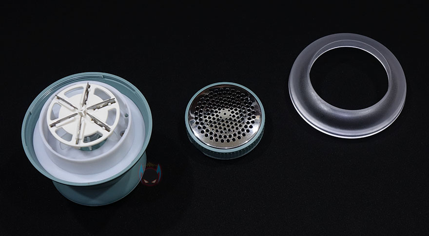 좀 더 자세히 살펴보면, 손잡이 맨 윗부분에는 가운데 중심에 전원버튼을 적용하고 있으며, 후면방향에는 충전케이블과 연결되는 USB Type-C 포트가 적용되어 있는데, 포트 왼쪽에 충전상태를 확인할 수 있는 LED 램프도 적용되어 있죠. 보풀을 흡입하는 바닥부분에는 반투명 디자인 처리와 함께 스테인레스 소재의 벌집망을 확인할 수 있는데, 시계 반대방향으로 돌리면 쉽게 분리가 됩니다. 그러니깐 보풀 청소 후 뚜껑을 열어서 비우는거죠. 또한, 스테인레스 벌집망부분 역시 시계 반대방향으로 돌리면 분리가 되고, 안쪽에 들어있는 컷팅 칼날도 쉽게 빼낼 수 있습니다. 참고로, 벌집망을 분리하면 내부 한쪽에 돌기형태의 스위치가 있는데, 이는 전원버튼과 연결되는 스위치부분으로 벌집망이 분리되면 스위치가 해제되기 때문에, 전원버튼을 눌러도 작동하지 않습니다. 분리할 때 안전을 위한 스위치인거죠. 그리고, 컷팅 칼날이 경우 다이아몬드 컷팅으로 처리되어 옷감 손상을 최소화하면서 보풀을 제거할 수 있도록 했습니다. 참고로, 내부 모터 경우도 요즘 무선 가전제품에 많이 사용되는 BLDC 모터를 사용하고 있어, 사용시간과 소음에도 신경을 썼죠. 끝으로, 함께 제공되는 충전케이블은 USB Type A에서 Type-C로 연결되는 인터페이스로 길이는 약 1m입니다. 참고로, 컷팅 칼날경우 사용횟수에 따라 칼날이 무뎌지기 때문에, 교체할 수 있게 공식스토어(https://bit.ly/3JY9DKC)에서 별도로 판매하고 있습니다.