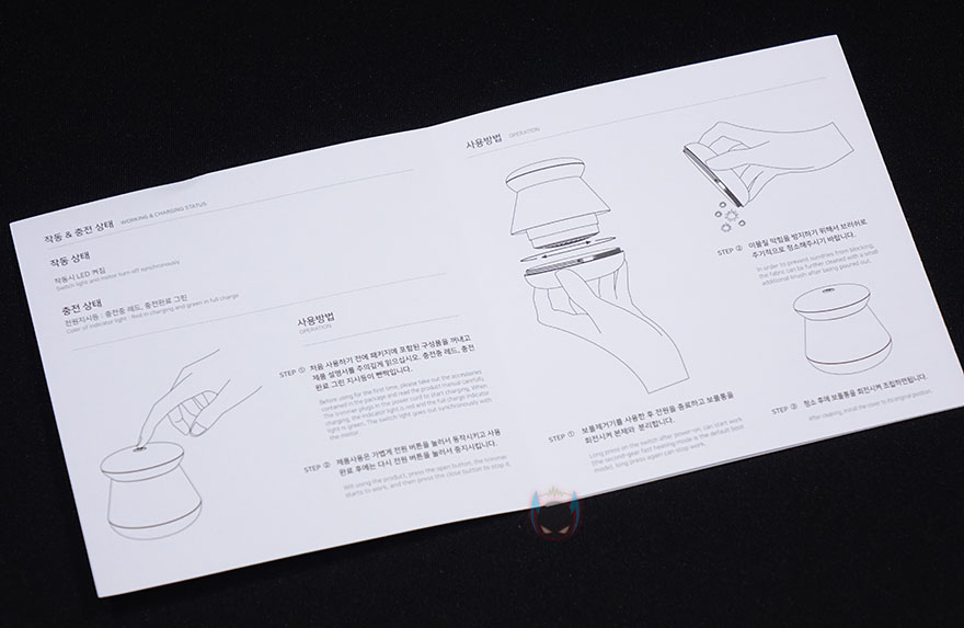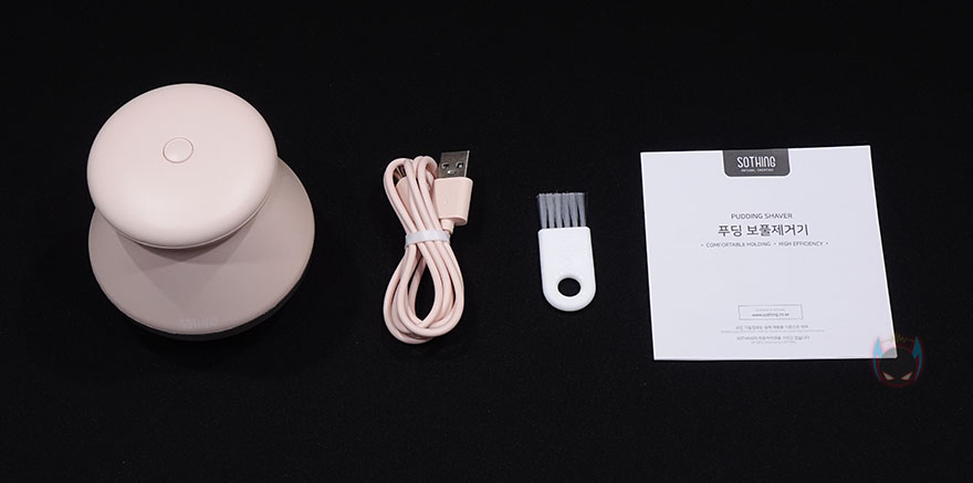 박스를 개봉해보면, 부속품들은 분실이 되지 않게 별도의 박스 포장을 한 번 더 했으며, 푸딩 보풀제거기는 비닐 포장과 함께 흔들리지 않게 고정틀 포장재도 함께 사용했습니다. 제품 구성은 간단하게 푸딩 보풀제거기, 충전케이블, 청소용 브러쉬, 제품설명서로 이루어져 있는데, 충전케이블은 제품 색상과 동일하게 맞추고 있습니다. 소형 제품이지만, 이런 세심한 제품 구성까지 신경 쓰는건 분명 소비자입장에선 좋은 이미지로 다가온다할 수 있죠. 그리고, 국내에 정식 출시된 제품이기때문에 제품설명서도 한국어로 되어있죠.