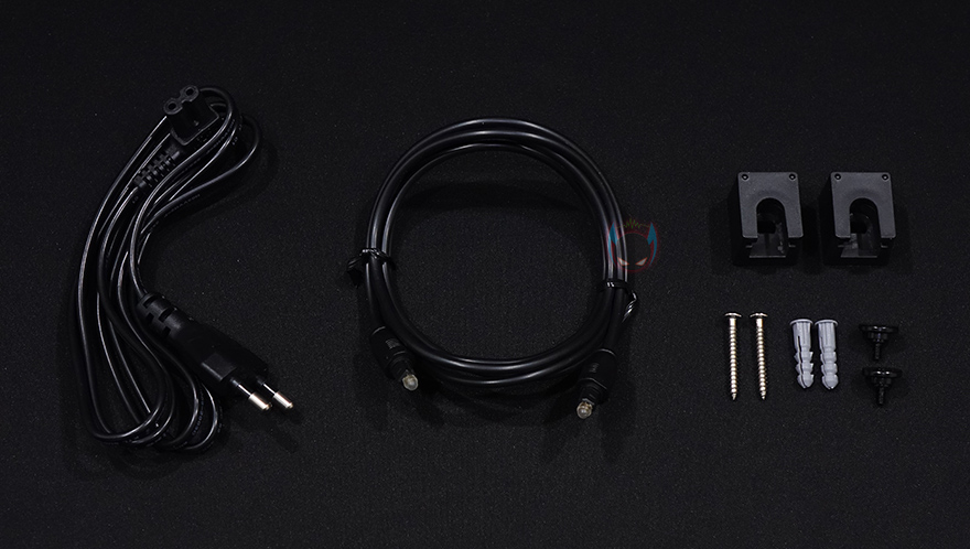박스를 열어서 제품 포장을 확인해보면, 비닐 포장과 함께 양쪽과 가운데 충격방지를 위해 우레탄-폼 소재를 끼워 완충되도록 했으며, 제품 구성은 TS205 사운드바, 별도의 부속품 박스, 무선 리모컨, 제품설명서 및 보증서로 이루어져있는데, 부속품 박스에는 전원케이블, 광케이블, 벽에 걸 수 있게 월마운트 브라켓을 제공해주고 있습니다.