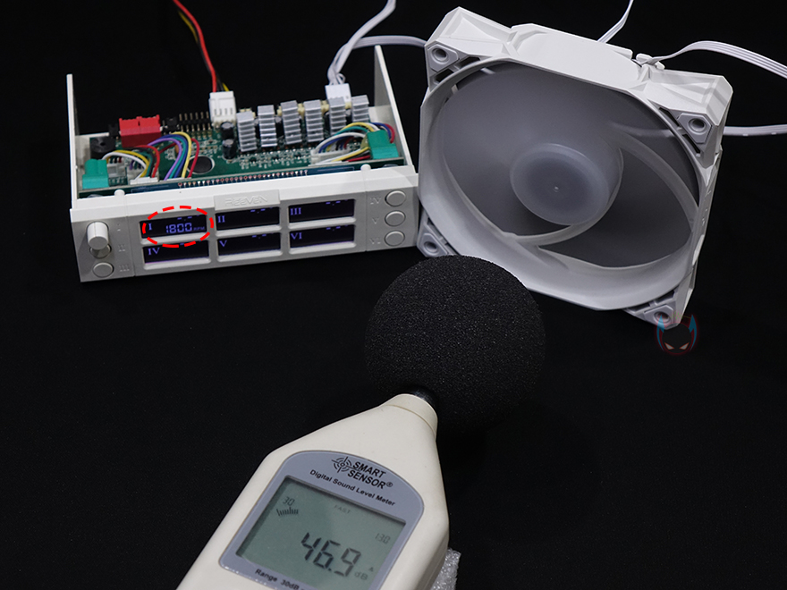 끝으로, 다크플래쉬 S101 FDB ARGB 팬의 소음을 측정해봤는데, 앞서 제품사양에서 팬 속도범위를 확인했듯이 S101 FDB ARGB 팬은 600~1800RPM 범위를 가지고 있습니다. 팬 컨트롤러를 사용해 5cm 거리를 두고, 600RPM대와 1800RPM대의 속도를 각각 측정해 본 결과, 600RPM대에서는 약 38dB(A), 1800RPM대에선 약 47dB(A)로 측정되었습니다. 전체적으로 소음은 정숙한 편이며, 실제 PC케이스에 장착해서 사용한다면, 진동소음까지 잡아주기때문에 이보다 좀 더 작다할 수 있어서, ARGB 팬으로써 소음에 대한 걱정은 크게 하지 않아도 되겠습니다.