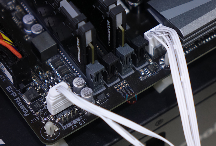 직접, 다크플래쉬 S101 FDB ARGB 팬을 사용해보면, 앞서 케이블 구성에서 언급했듯이, 확장케이블이 함께 연결되어 있기 때문에, 팬과 팬끼리 연결해서, 하나의 팬만 메인보드 PWM 커넥터와 5V ARGB 헤더에 연결해줘도 5개의 팬이 모두 함께 작동됩니다. 동일한 팬 속도와 RGB 연동을 원한다면, 이 방식이 가장 최적이라 할 수 있죠. 그리고, 사용하는 메인보드에서 지원하는 다양한 RGB 모드효과와 연동되는 것을 확인할 수 있는데, 필자의 G사의 메인보드를 사용했습니다.