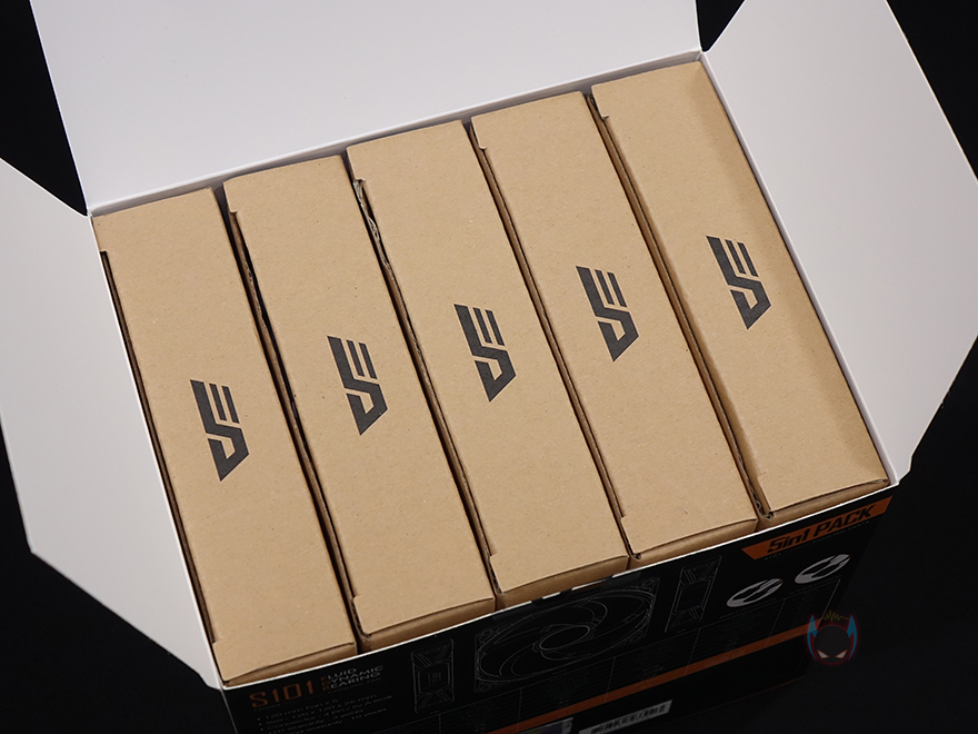 박스 후면에는 한국어를 포함해서 제품의 기본 사양을 표기해놨는데, 앞서 말한 10년 무상보증기간은 베어링 보증기간을 의미하며, LED 부분의 보증기간을 3년임을 추가로 확인할 수 있습니다. 박스를 열어보면, 각 팬-별로 다시 박스보관된 것을 확인할 수 있으며, 각 박스별로 들어이는 구성품은 S101 FDB ARGB 팬과 장착에 필요한 스크류가 전부입니다. 일반적으로 이런 묶음 팩키지 RGB 팬 상품의 경우 LED 허브 같은 장치도 들어있는 경우가 있는데, S101 FDB ARGB의 묶음 팩키지에는 LED 허브 같은 장치 제공은 없습니다. 그 이유는 뒤에서 확인하겠지만, 이 제품은 메인보드의 RGB 기술과 연동되는 5V ARGB 방식이고, 팬 연결방식도 표준인 PWM 방식을 가졌기 때문에, 굳이 별도의 허브 같은 장치는 필요없는거죠.