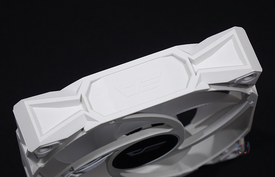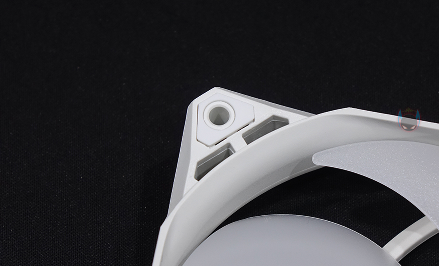다크플래쉬 S101 FDB ARGB 팬을 살펴보면, 크기는 전형적인 120x120x25mm의 120mm 팬이며, 색상은 블랙과 화이트 2가지로 출시되었습니다. 팬 블레이드(날개)는 총 5개이며, RGB 효과 극대화를 위해 반투명형태로 처리되어 있죠. 또한, 요즘 RGB 팬들과 마찬가지로 S101 FDB ARGB 팬 역시 모서리 즉, 나사홀 주변에는 진동소음 최소화를 위해 고무 패드 처리도 기본 적용되어 있습니다. 또한, 팬 프레임 측면에는 다크플래쉬 로고(Logo)도 새겨놨죠. 참고로, 가운데 내부 베어링은 앞서 언급했듯이 FDB(유체동압베어링) 방식으로 기존의 볼 베어링보다 사용 시간이 오래 지나도 마찰과 소음이 적은 것이 특징입니다.