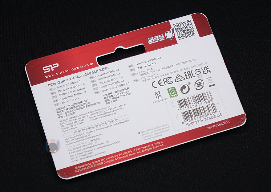 제품 팩키지는 기존의 자사 제품들처럼 박스형태가 아닌 엑세서리 제품들처럼 투명-캡 방식의 팩키지로 바로 외부에서 제품 실물을 볼 수 있습니다. 모델명과 함께 용량, 5년의 보증기간 표기도 확인할 수 있죠. 참고로, XPOWER XD80 SSD의 최대용량은 2TB까지 출시되었습니다. 팩키지 뒷면에는 한국어를 포함해 각 나라별 언어로 간단한 안내문구정도만 확인할 수 있고, 뒷면에 절취선이 적용되어 있어서, 팩키지 개봉은 어렵지 않게 할 수 있습니다.