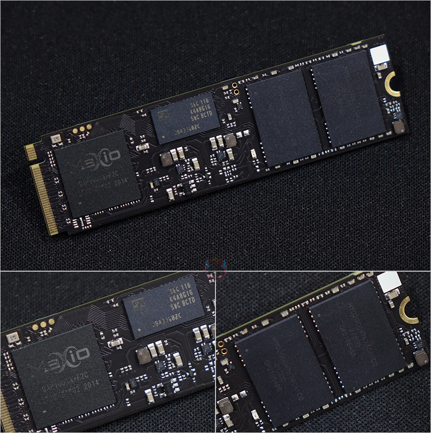 제품 구성은 XPOWER XD80 SSD 외에는 다른 구성품은 없기때문에, 바로 제품을 살펴보는데, 규격은 NVMe SSD에서 가장 많이 볼 수 있는 2280 사이즈를 가졌으며, 디자인에서 눈에 들어오는 부분은 역시 방열판이라 할 수 있습니다. 올-블랙 색상에 가운데 XPOWER 로고만을 새겨 방열판 소재의 헤어라인 효과와 함께 심플함과 고급스러운 느낌을 함께 주는데, 비슷한 시기에 출시한 XPOWER Zenith RGB 메모리의 방열판 디자인과 유사한 것을 확인할 수 있죠. 방열판을 제거하고, 좀 더 자세히 살펴보면, XD80 제품에 따라 PCB기판이 다를 수 있는데 리뷰에 사용된 제품은 블랙 PCB기판을 가졌으며, 컨틀롤러 칩셋은 MAXIO사의 칩셋이 사용되었고, 속도저하가 생기지 않게 DRAM 캐쉬가 사용되었는데, 삼성(SAMSUNG) DDR4 8GB 2666MHz 메모리를 사용했습니다. 그리고, 낸드플래시는 HIKVISION사의 3D TLC 낸드플래시 메모리가 사용되었습니다. 참고로, 제조사는 제품 수요에 따라 변경될 수 있습니다.