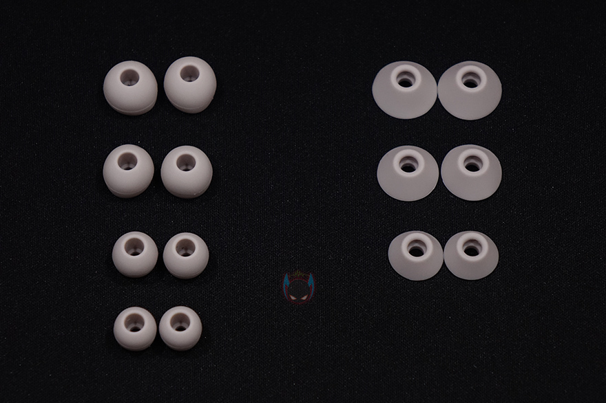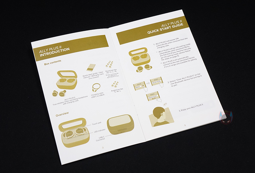 속박스를 열어보면, Ally Plus 2 무선이어폰이 충전케이스에 담긴 상태로 흔들리지않게 그리고 외부 충격방지를 위해 스펀지 완충재에 끼워져 포장된 것을 확인할 수 있습니다. 그리고, 그 아래에는 부속품 박스, 밑바닥부분에는 설명서가 들어있는데, 전체구성은 Ally Play 2 무선이어폰/충전케이스, USB 충전케이블, 2가지 타입의 이어-팁, 제품설명서로 이루어져 있죠. 제품설명서를 그림과 함께 설명해주기 때문에, 영문표기지만 쉽게 이해할 수 있으며, 이어-팁은 2가지 타입으로 기본적인 둥근 원형 이어-팁은 4가지(XS/S/L/XL) 사이즈로, 각진 원형-이어팁은 3가지(S/M/L) 사이즈로 제공해주고 있습니다. 참고로, 이어폰에 기본 장착되어 있는 이어-팁은 둥근 원형 이어-팁으로 중간(M) 사이즈입니다. 그러니깐, 둥근 원형 이어-팁은 총 5가지 사이즈로 제공되고 있는거죠.