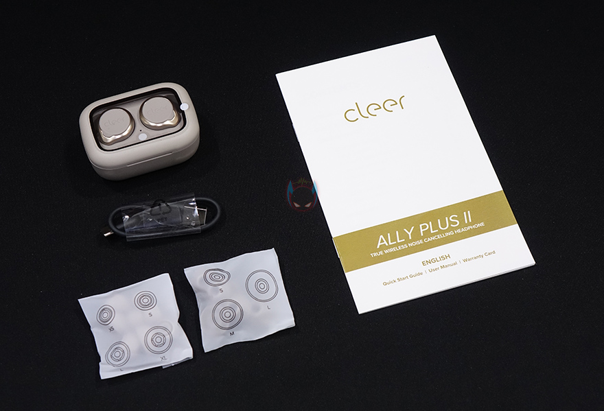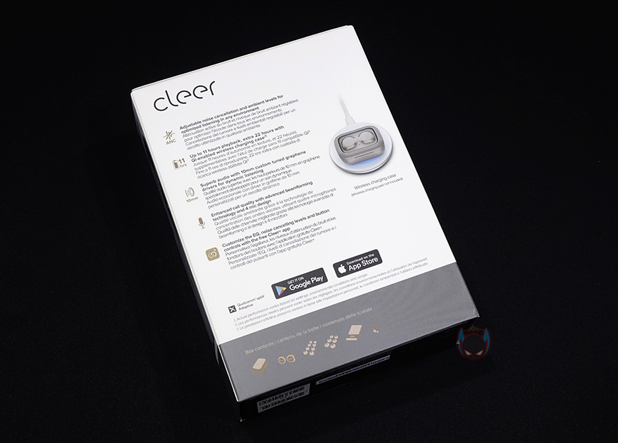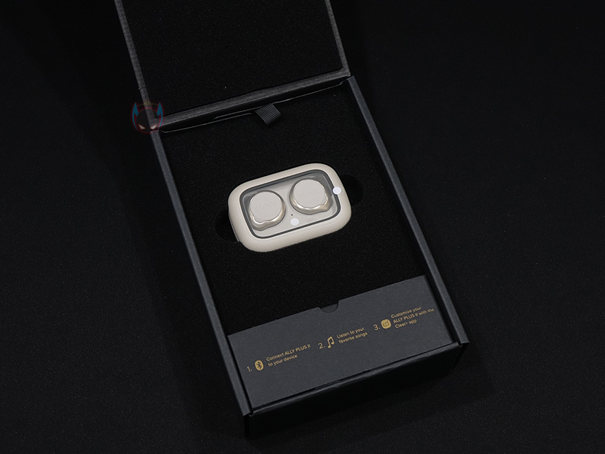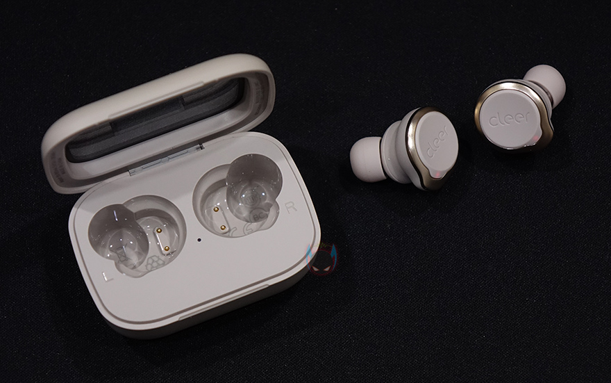 Ally Plus 2 무선이어폰의 충전케이스를 열어보면, 다른 제품들처럼 일정 각도까지는 손으로 열다가 나머지부분은 반자동으로 열립니다. 닫기는것도 마찬가지죠. 기준은 약 45℃가량정도입니다. 뚜껑을 열면, 내부에 수납된 이어폰을 확인할 수 있고, 꺼내서 이어폰을 살펴보면, 개봉시에는 배터리 소모가 되지않게 충전케이스와 접지되는 이어폰부분에 보호비닐이 부착되어 있죠. 이어폰 바깥쪽에는 'Cleer' 문구를 새겨놨으며, 문구부분이 터치 컨트롤부분이기도 합니다. 이어폰 형태는 커널형으로 앞서 언급했듯이 기본 장착된 이어-팁은 둥근 원형의 중간(M) 사이즈이며, 내부에는 10mm 드라이버 유닛이 탑재되어 있죠. 그리고, 이어폰 테두리 주변 위아래에는 각각 마이크가 2개씩 총 4개가 적용되어 있는데, 퀄컴 cVC 8세대로 액티브 노이즈 캔슬링(ANC)이 함께 적요된거죠.