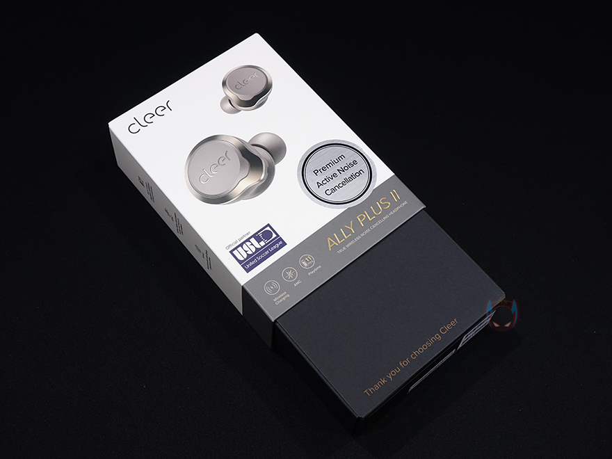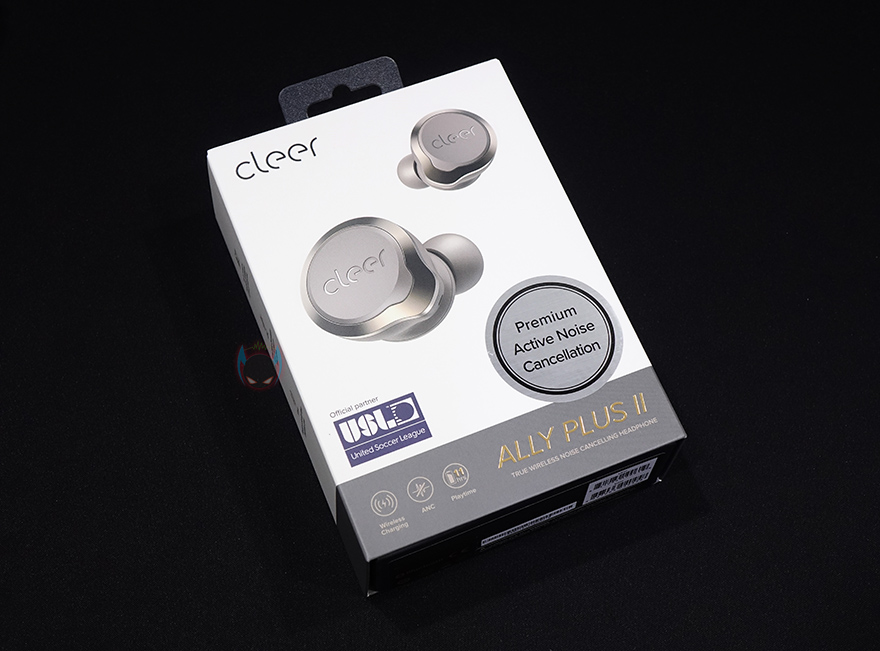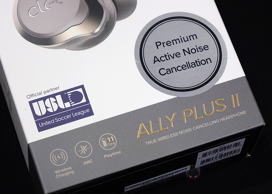 본격적으로 Cleer Ally Plus 2 무선이어폰을 살펴보면, 제품 팩키지는 박스전체까지 밀봉된 형태로 모바일 액세서리 제품군에 속하지만 나름 신경을 쓴 모습입니다. 그리고, 박스 전면에는 제품 이미지와 함께 모델명, 그리고 액티브 노이즈 캔슬링(ANC) 지원, 무선충전, 11시간 사용의 문구를 확인할 수 있으며, 특히, 미국 축구리그(USL) 공식파트너라는 문구도 확인할 수 있죠. 쉽게 말해, 후원사라는건데, 그럼 Grandsun 회사의 규모가 꽤 크다라는것도 짐작할 수 있습니다.