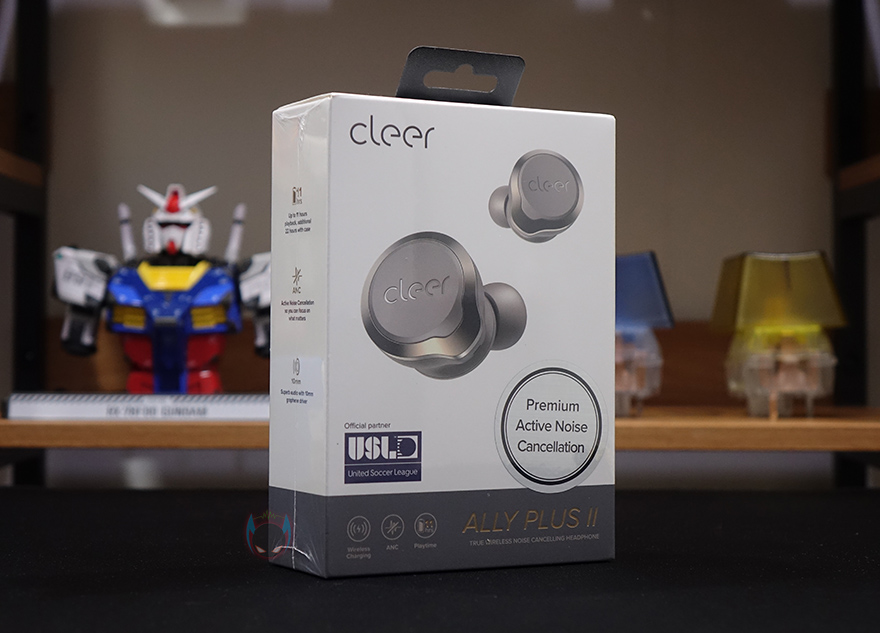 본격적으로 Cleer Ally Plus 2 무선이어폰을 살펴보면, 제품 팩키지는 박스전체까지 밀봉된 형태로 모바일 액세서리 제품군에 속하지만 나름 신경을 쓴 모습입니다. 그리고, 박스 전면에는 제품 이미지와 함께 모델명, 그리고 액티브 노이즈 캔슬링(ANC) 지원, 무선충전, 11시간 사용의 문구를 확인할 수 있으며, 특히, 미국 축구리그(USL) 공식파트너라는 문구도 확인할 수 있죠. 쉽게 말해, 후원사라는건데, 그럼 Grandsun 회사의 규모가 꽤 크다라는것도 짐작할 수 있습니다.