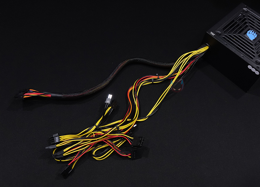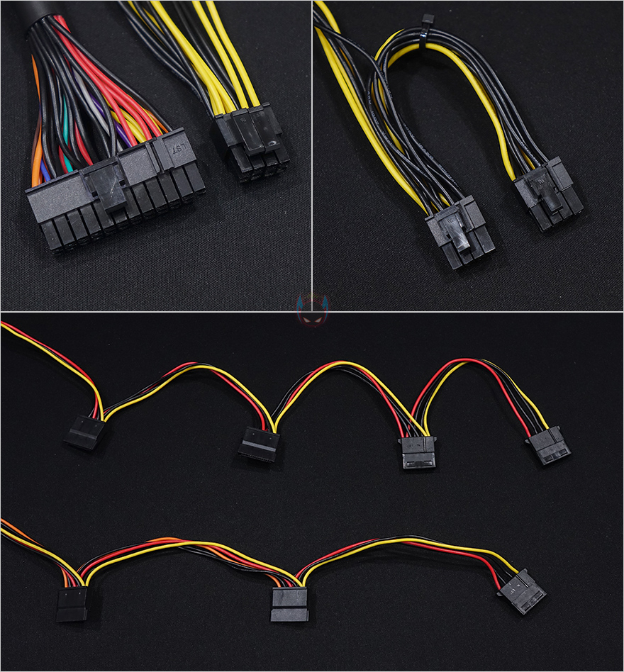 케이블 역시 이전 VISION 1때와 동일하게 메인보드 전원케이블은 슬리빙 처리를 해놨으며, 나머지 케이블은 기본형태입니다. 이전 모델때와 마찬가지로 최대한 가격부담을 줄인거죠. 케이블 길이는 요즘 PC케이스 맞춰 충분한 길이를 가졌으며, 커넥터 지원은 앞서 잠깐 언급했듯이 이전과 동일합니다. 메인보드 24핀, 보조전원 ATX 8핀, PCI-E 8(6+2)핀 2개, S-ATA 4개, P-ATA 3개로 구성되어 있죠.