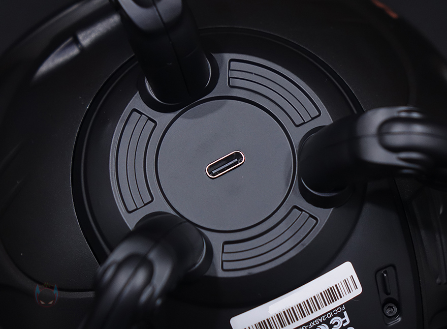 그리고, 상단부분 역시 이전 Mars 스피커와 마찬가지로 터치방식의 볼륨조절이 적용되어 있는데, 역시 볼륨단계를 LED로 보여줍니다. 조금 달라진 점이라면, 뒤에서 확인하겠지만, 볼륨 LED 색상이 Mars Pro에선 화이트색상으로 색상 모델과 상관없이 통일되었습니다. 그리고, 스피커 밑부분에는 USB 충전케이블과 연결되는 USB Type-C 포트가 적용되어 있는데, 이전 Mars 스피커에선 충전 포트와 오디오 포트가 각각 따로 적용되었던 반면에, 이번 Mars Pro 스피커에선 이 충전포트가 오디오 포트 역할도 함께 하기때문에, 제공되는 AUX 케이블을 함께 사용할 수 있습니다. 끝으로, 지지대 역할을 해주는 다리 부분은 이전 Mars 스피커와 동일한 디자인을 가졌으며, 다리를 접는 것도 동일합니다. 물론, 다리 끝부분 받침에는 진동소음을 줄이도록 패드가 적용되어 있죠.