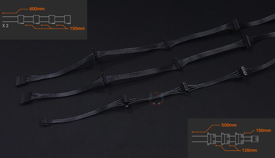 모듈러 케이블은 총 8개로 구성되어 있는데, 참고로 이번 울트라 듀러블로 출시한 파워서플라이는 850W용량을 비롯해 750W, 1000W 용량까지 3가지로 출시되었고, 750W와 850W 모델은 케이블 개수가 같고, 1000W 모델은 PCIE 케이블이 1개 더 많습니다. 케이블은 플랫(Flat) 타입으로 일반 케이블보다 정리하기에 좀 더 수월하며, 케이블규격은 인텔 파워서플라이 가이드 표준기준에 사용되는 18AWG를 사용했습니다. 또한, 케이블색상과 커넥터 색상 모두 올-블랙 색상으로 통일하고 있으며, 메인보드 24핀을 비롯한 커넥터 지원에는 보조전원 ATX 8(4+4)핀 2개, PCIE 8(6+2)핀 4개, S-ATA 8개, P-ATA 3개, FDD 1개로 구성되어 지원해주고 있습니다. 보조전원이 2개 들어가는 메인보드와 그래픽카드 2개 사용의 멀티 GPU 지원은 충분히 갖추고 있다 할 수 있죠. 케이블길이도 넉넉합니다.
