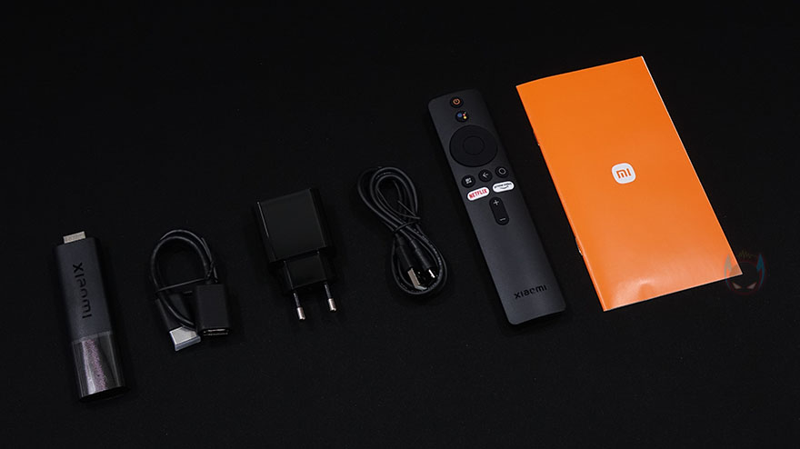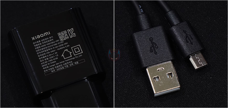 그리고, 박스 후면에는 샤오미 미 스틱 4K TV스틱을 사용했을 시 보게되는 안드로이드 TV 화면 연출이미지와 방금 언급했던 구글 음성서비스, 크롬캐스트 지원에 대한 설명도 확인할 수 있습니다. 제품포장은 리모컨은 비닐포장에 나머지 부속품들은 별도의 틀-박스에 포장을 했으며, 제품구성은 샤오미 미 스틱 4K TV스틱, HDMI 연장케이블, 전원어댑터 및 케이블, 리모컨, 제품설명서로 이루어져 있습니다. 전원어댑터는 5W를 지원하기때문에, 연결케이블도 마이크로 5핀으로 적용되어 있죠.
