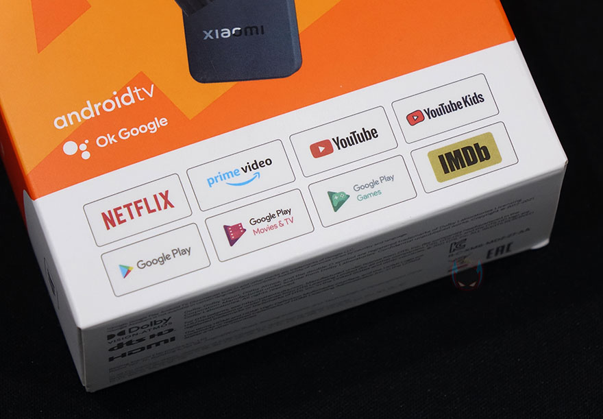 TV 스틱은 일종의 액세서리 제품군에 속하기 때문에 사이즈가 작은 편이죠. 샤오미 미 스틱 4K 역시 TV 스틱 제품으로 제품박스를 큰 편이 아닙니다. 그리고, 전면에는 제품 이미지와 함께 모델명, 안드로이드TV 음성서비스 지원, 넷플릭스, 유튜브, 구글 스토어 등의 어플 지원표기를 확인할 수 있죠. 박스 측면에는 이미지와 함께 제품 구성품을 간단히 확인할 수 있으며, 반대쪽 측면에는 연결법도 간단히 설명해주고 있습니다.