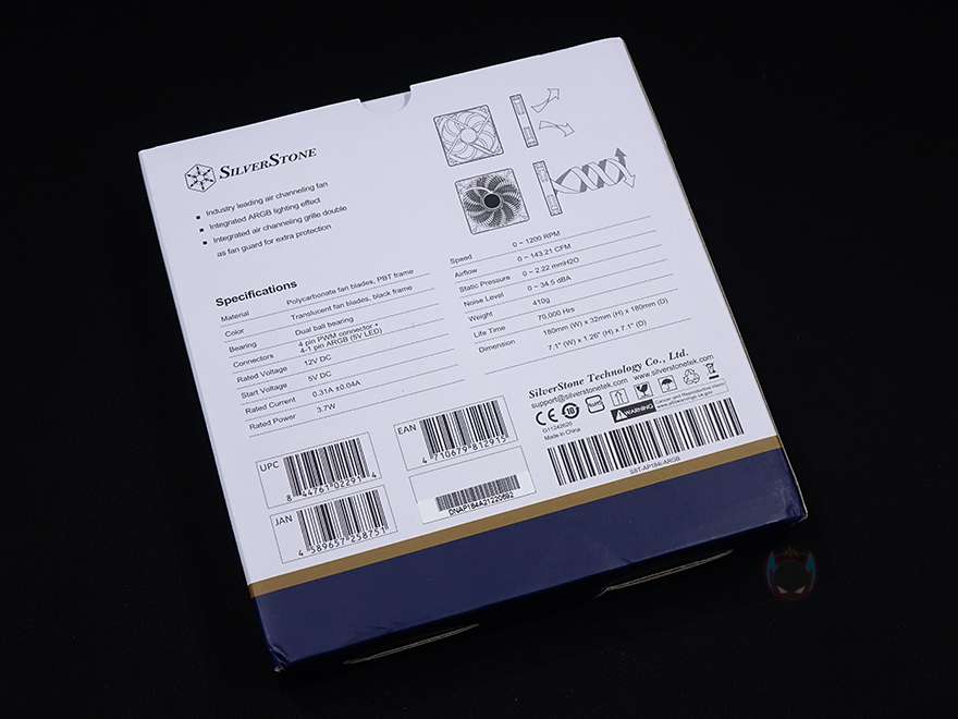 실버스톤 Air Penetrator 184i ARGB 팬을 살펴보면, 디자인은 먼저 나온 120mm/140mm 모델과 동일한 디자인을 가지고 있습니다. Air Penetrator 팬 특유의 디자인인 팬 후면의 통합 에어 채널링 그릴(integrated Air Penetrator grille)이 적용되어 있죠. 이 통합 에어 채널링 그릴은 후면으로 빠지는 공기흐름을 한곳에 집중시켜 더 멀리 바람이 전달되기 위함입니다. 그리고, 180mm로 사이즈가 커졌기때문에, 팬 두께도 32mm로 120/140mm 모델보다 두꺼워졌습니다.