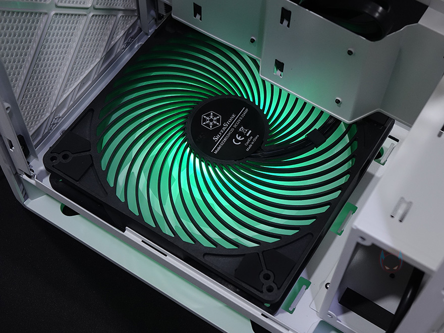이렇게 Air Penetrator 184i ARGB 팬이 RGB 조명효과를 갖추고 있으면, 생각나는 PC케이스가 있죠. 바로, 앞서 만났던 실버스톤의 ALTA G1M 모델입니다. 이전 리뷰(https://piscomu.com/4060)에서 확인했듯이 ALTA G1M에도 하단에 180mm 팬이 장착되어 있는데, 바로 Air Penetrator 184i PRO 모델로 Air Penetrator 184i ARGB와는 RGB 조명효과 유무만 차이를 두고 있습니다. 그래서, 이전 리뷰에서도 아쉬운 부분이라고 지적을 했는데, 실제로 Air Penetrator 184i ARGB 팬으로 교체해서 RGB 조명효과를 연출해보면, 케이스가 무드등 느낌으로 또다른 분위기를 줍니다.