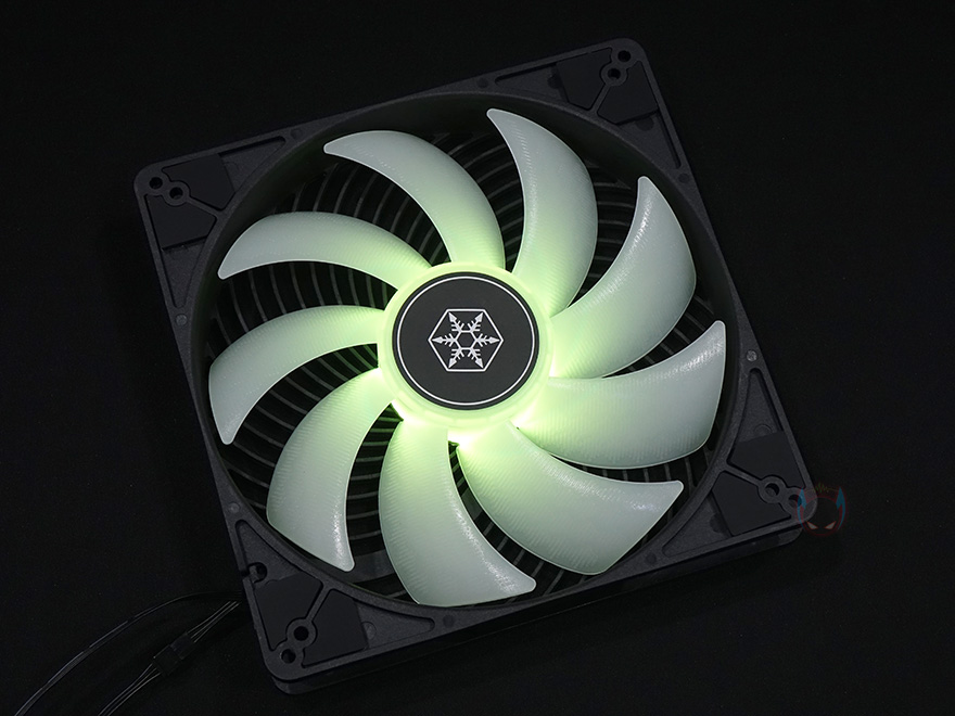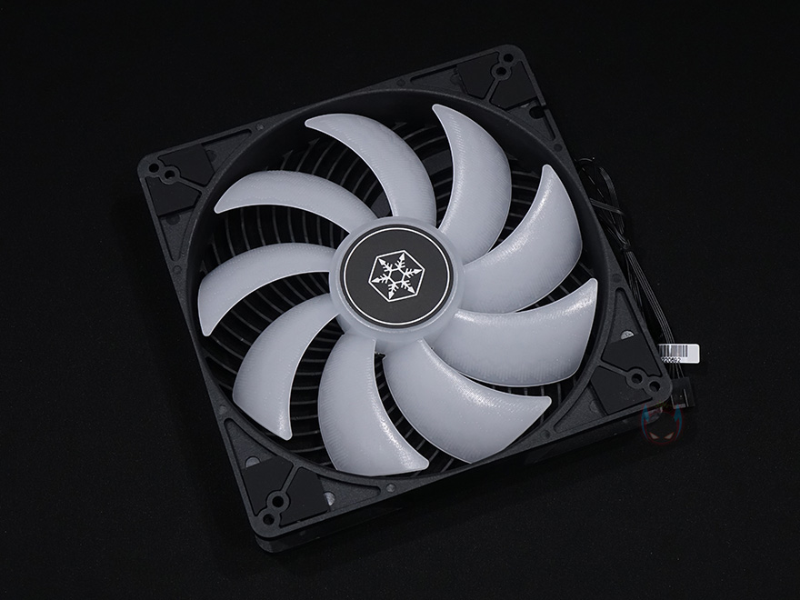 실버스톤 Air Penetrator 184i ARGB 팬을 살펴보면, 디자인은 먼저 나온 120mm/140mm 모델과 동일한 디자인을 가지고 있습니다. Air Penetrator 팬 특유의 디자인인 팬 후면의 통합 에어 채널링 그릴(integrated Air Penetrator grille)이 적용되어 있죠. 이 통합 에어 채널링 그릴은 후면으로 빠지는 공기흐름을 한곳에 집중시켜 더 멀리 바람이 전달되기 위함입니다. 그리고, 180mm로 사이즈가 커졌기때문에, 팬 두께도 32mm로 120/140mm 모델보다 두꺼워졌습니다.