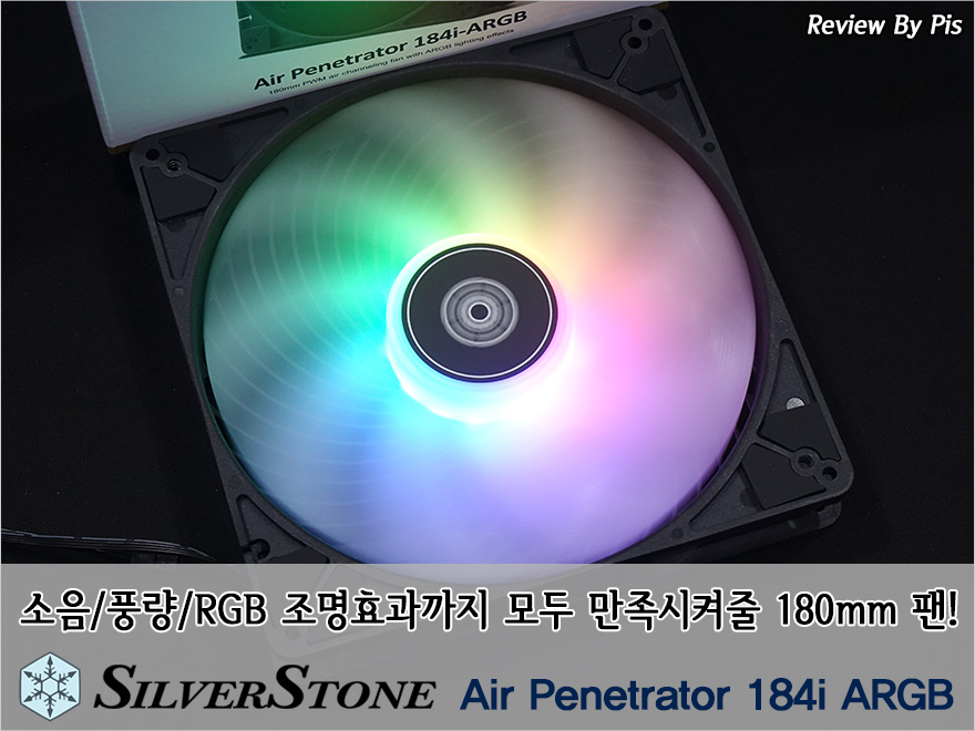 실버스톤에서 180mm 크기로 출시한 ARGB팬 Air Penetrator 184i ARGB 모델은 먼저나온 120/140mm 모델과 동일한 디자인 그러니깐 통합 에어 채널링 그릴을 적용하고 있어서 팬 크기만큼이나 풍량은 더 많아졌고, 전달도 더 멀리되는 팬 입니다. 여기에 메인보드 ARGB 지원으로 RGB 조명효과까지 갖추고 있어서, 소음은 낮으면서 풍량은 높고, RGB 조명효과까지 생각했던 소비자들에겐 충분히 추천해줄만한 제품이죠. 특히, 180mm 팬을 장착할 수 있는 PC케이스에서 ARGB 팬을 찾고 있었던 소비자에겐 매우 매리트 있는 제품이라 생각됩니다. 그럼, 이상으로 마치겠습니다.