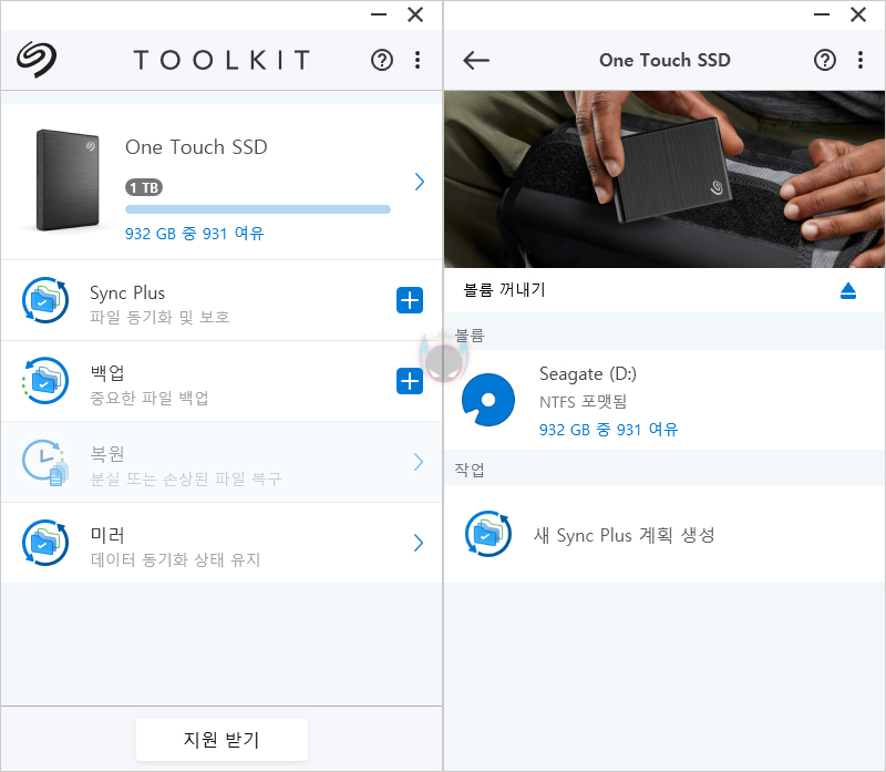 끝으로, 씨게이트 Fast One Touch SSD 데이터복구 외장SSD 역시 자사의 다른 제품들처럼 소프트웨어제공을 해줍니다. PC나 노트북에서 사용할시에는 Toolkit 소프트웨어를 통해 백업 및 미러 동기화 기능을 사용할 수 있으며, 크기가 작은만큼 USB Type-C 케이블로 스마트폰과 연결하면 모바일기기에서도 Seagate SSD Touch 어플을 통해 백업 및 동기화 기능을 사용할 수 있죠. 참가로, 모바일어플은 안드로이드용으로만 지원해주고 있습니다.