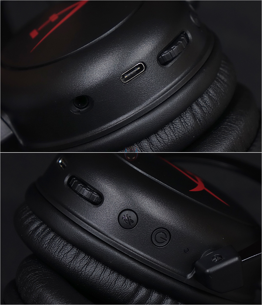 이어-컵은 착용시 자동으로 각도조절이 되도록 처리되어 있으며, 왼쪽 이어-컵에는 분리형 마이크와 연결되는 포트를 비롯해, 충전케이블와 연결되는 USB Type-C포트, 마이크 On/Off 버튼, 전원버튼, 무선 연결상태를 확인할 수 있는 LED 인디케이터가 적용되어 있습니다. 기존의 유선 모델은 가상 7.1채널 지원으로 케이블에 컨트롤 리모컨이 있었죠. 이어-패드 역시 인조가죽과 함께 쿠션처리를 해놨으며, 귀를 완전히 덮는 밀폐형입니다. 쿠션 안쪽 면적은 약 65x40mm이며, 내부에는 53mm 네오디윰 드라이버 유닛이 탑재되어 있으며, 임피던스는 먼저 나온 클라우드2 무선과 동일한 60Ω입니다.