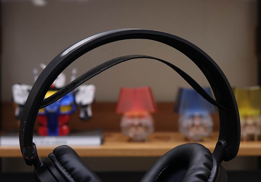 ASUS TUF Gaming H1 wireless 무선 게이밍 헤드셋 디자인을 살펴보면, 앞서 잠깐 언급했듯이 전체적인 디자인은 먼저 나온 TUF Gaming H3 wireless 모델과 유사합니다. 정확히는 좀 더 무게를 줄인 디자인이라 할 수 있는데, TUF Gaming H3 wireless 모델이 307g의 무게를 가졌던 반면, 이번 TUF Gaming H1 wireless 모델은 295g으로 줄어들었죠. 무게를 줄인 대표적인 디자인부분은 바로 헤드밴드부분으로 일반적인 통짜 프레임이 아닌 바깥쪽에는 고정 프레임을 안쪽에는 패브릭 스트랩으로 처리된 밴드형태로 일종의 서스펜션 형태를 가졌습니다. 고무밴드 같은형식이기때문에 사용자 착용에 따라 자동으로 밴드 길이가 늘어나겠습니다. 바깥쪽 고정 프레임은 가운데 길쭉한 홀 처리와 함께 양쪽에 ASUS와 TUF Gaming 로고를 처리해놨으며, 안쪽 패브릭 스트랩은 바깥쪽 방향에 로고 처리를 해놨습니다.