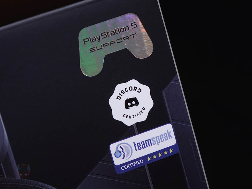 제품팩키지는 박스형으로 전면에는 모델명과 함께 제품의 측면 이어-컵 이미지를 담고 있는데, 먼저 나온 TUF Gaming H3 wireless 모델과 유사하다라는걸 알 수 있습니다. 뒤에서 디자인을 하나씩 살펴보겠지만, 전체적으로 TUF Gaming H3 wireless의 라이트 버전이라는 느낌을 받습니다. 전면에는 이외에도 플스5 지원, 디스코드와 팀스피크 인증을 확인할 수 있고, 측면에 제품의 기본사양으로 무선 방식과 주파수 대역, 임피던스, 드라이버유닛 크기, 배터리용량 등을 확인할 수 있죠. 또한, 바로 옆에는 한국어를 포함해 각 나라별 언어로 제품 타이틀 문구를 표기해놨습니다.