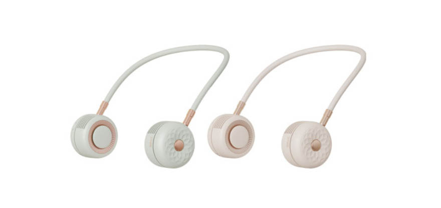 그럼, 소싱 데이지 넥밴드 선풍기를 살펴보면, 일단 색상은 그린과 베이지 2가지 색상으로 출시되었는데, 색상별로 데이지 그린, 데이지 핑크라고 명칭하고 있습니다. 그리고, 개봉시 그대로 선풍기를 꺼냈을 때 디자인만큼 눈에 띄는 부분이 바로 목에 걸게 되는 케이블부분인데, 한 번 감겨있는 형태로 바로 자유롭게 구부릴 수 있는 플렉시블 케이블입니다. 요즘 스마트폰 거치대 상품에서 자유롭게 구부릴 수 있는 플렉시블과 유사한 형태로 사용자가 원하는대로 자유롭게 구부릴 수 있죠. 이렇게 케이블을 자유롭게 구부릴 수 있기때문에, 고정형 케이블보다 사람 체형에 따라 자유롭게 착용할 수 있겠습니다. 물론, 선풍기부분도 360˚까지 회전시킬 수 있습니다. 그리고, 케이블 마감도 피부에 자극적이지 않게 ABS소재를 사용했죠.