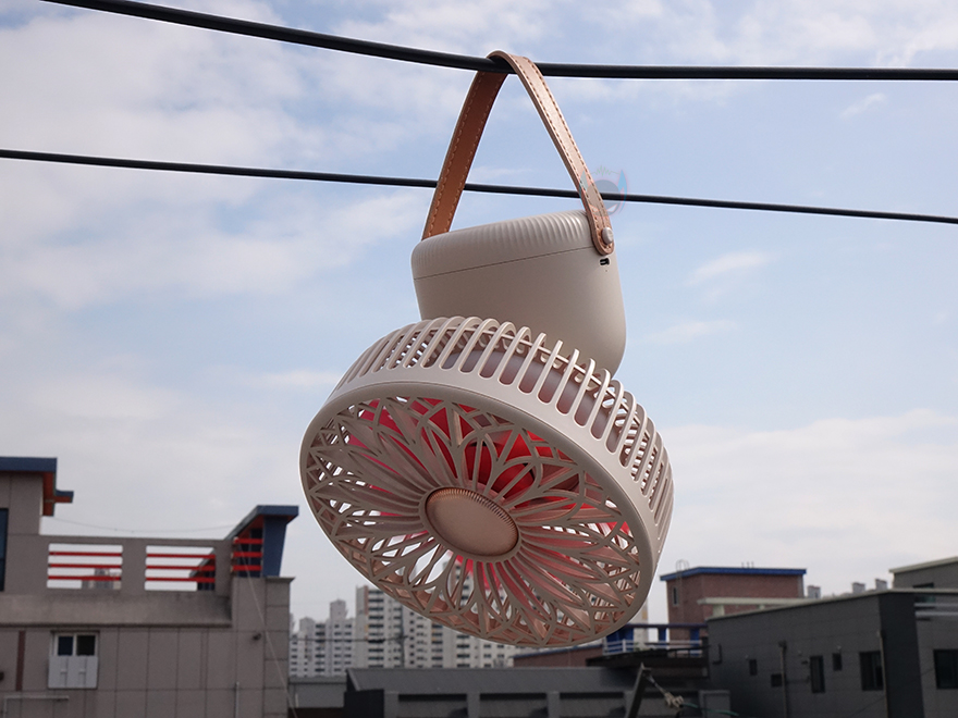 끝으로, 소싱 썬플라워 멀티 선풍기는 앞서 제품박스에서부터 언급했듯이, 3가지 사용법으로 이용할 수 있습니다. 테이블 같은 곳에 그냥 올려놓고 사용할 수 있는 스탠드형, 브라켓을 사용해서 벽에 고정해서 사용할 수 있는 벽걸이형, 그리고, 스트랩을 사용해서 줄이나 막대에 걸어서 사용할 수 있는 타프형까지. 실제로 사용해보면, 각도조절과 좌우회전이 가능하기때문에 어떤 용도로 사용해도 만족스럽습니다.