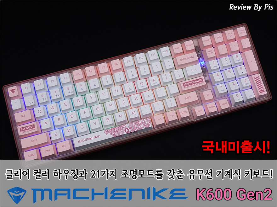 최근 기계식 키보드 시장의 새로운 트랜드는 크게 3가지라 할 수 있습니다. 먼저, 연결방식에서 유무선을 지원하는 제품들이 이제 많이 출시되고 있고, 키 배열에선 풀-배열이나 텐키리스 같은 배열도 이제 식상해서 96~100키 배열 키보드들이 점점 늘어나고 있죠. 그리고, 마지막 한가지는 하우징부분으로 키보드 하우징 케이스를 클리어 디자인으로 적용한다라는 점입니다. 아직 국내시장에는 진출하지 않았지만, 앞전에 Machenike(메카닉)의 K600 1세대(Gen1) 키보드를 만나봤었는데, 그때 잠깐 언급했던게 이 3가지 트랜드를 모두 갖춘 2세대(Gen2) 모델이 있다고 했었죠. 그래서, 오늘은 바로 Machenike K600 2세대(Gen2) 키보드를 만나보도록 하겠습니다.