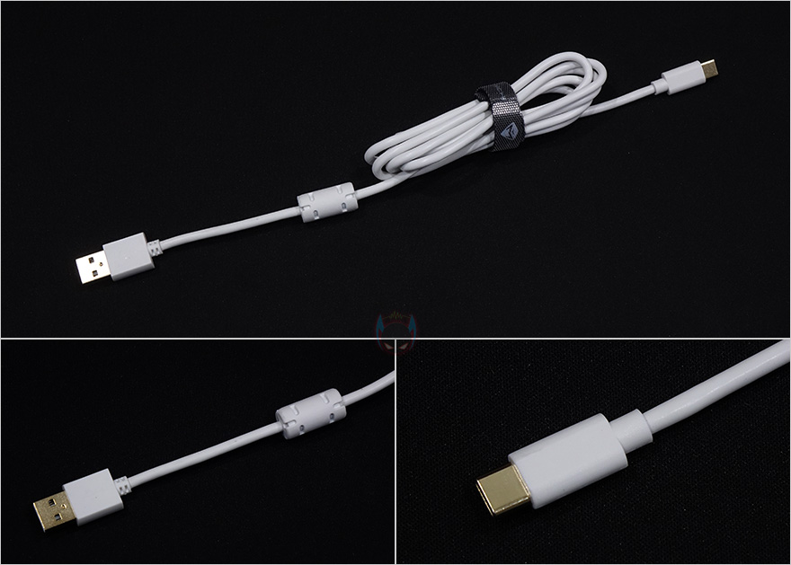 키보드 전면 한쪽에는 유/무선(Cable/Wireless) 스위치, 유선시 사용되는 분리형 케이블과 연결되는 USB Type-C 포트가 배치되어 있으며, 키보드 측면에서 보면 타이핑에 최적화라 불리우는 스텝-스컬처2(step sculpture 2) 단계배열을 확인할 수 있으며, 키보드 밑바닥 앞부분에는 2단 높낮이조절 받침대가 적용되어 있습니다. 끝으로, 유선시 사용되는 분리형 케이블은 USB Type-C to A 인터페이스를 가졌습니다.
