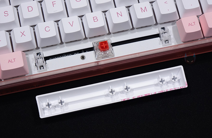 키-캡은 1세대와 마찬가지로 PBT재질이며, 두께는 약 1.4mm에 가까운 두께를 가졌고, 스위치는 1세대와 달리 2세대에선 카일 BOX(Kailh Box) 스위치를 적용했습니다. 참고로, 스위치는 2가지로 적축(Red switch)과 백축(White switch)으로 적용되었으며, 앞서 구성품에서 언급했듯이 K600 2세대(Gen2) 모델에선 스위치로 분리가 가능한 핫-스왑(Hot-swap) 방식을 적용하고 있습니다. 그래서, 실제로 제공되는 스위치 리무버로 분리해보면, 내부 PCB기판에 SMD LED가 박힌 것을 확인할 수 있으며, 스위치는 3pin과 5pin 모두 장착할 수 있게 구멍처리가 되어 있습니다. 이렇게 스위치를 교체할 수 있다라는 점은 소비자에게 자기 취향으로 바꿀 수 있어서 매우 매력적인 부분이라 할 수 있죠. 그리고, 스페이스-바 같은 스테빌라이저는 체리식으로 적용되어 있습니다.