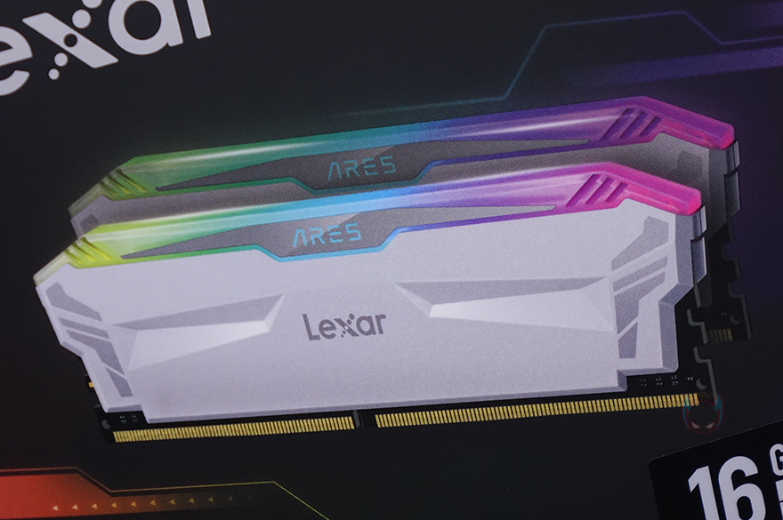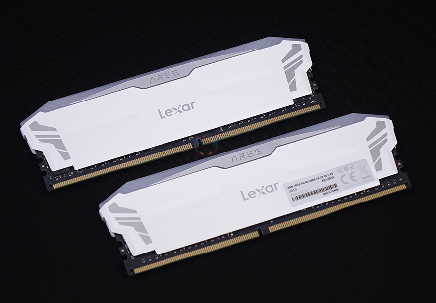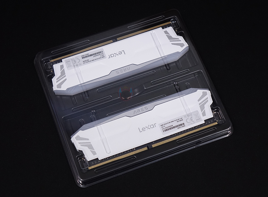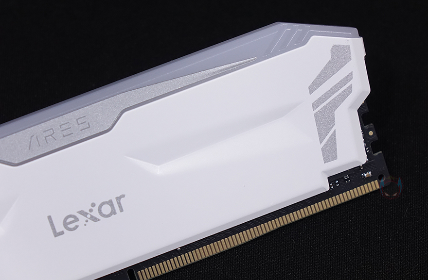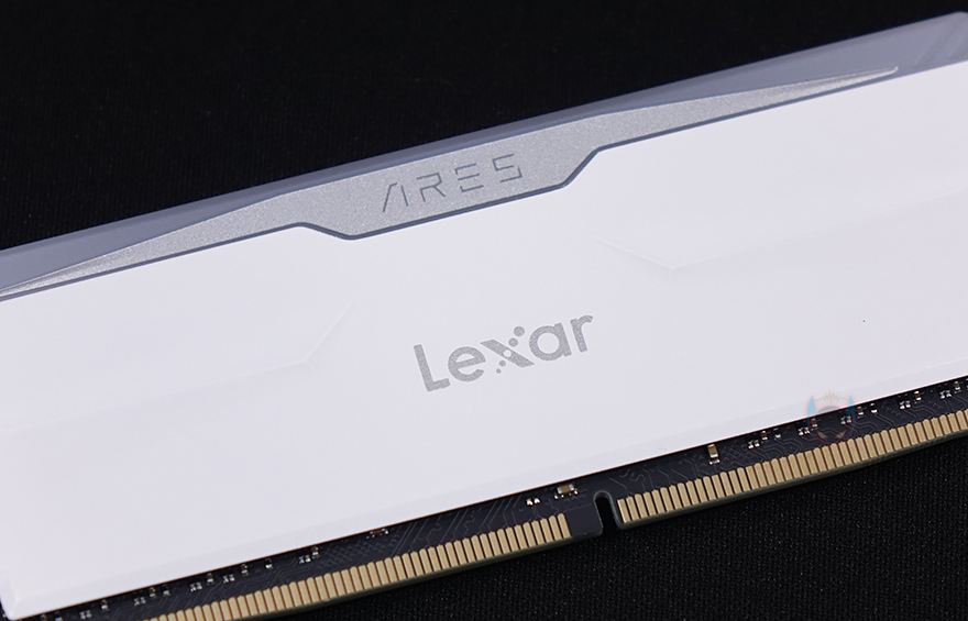 ARES RGB DDR4는 RGB RAM이기때문에 방열판이 기본 부착되어 있는데, 방열판 중앙에는 렉사 로고(Lexar Logo)가 새겨져 있으며, 바로 위 그러니깐 LED Bar에는 ARES 로고(Logo)를 새겨놨습니다. 또한, 방열판 양쪽에는 약간의 음각처리도 적용되어 있죠. RGB 조명효과를 볼 수 있는 상단 LED Bar는 민무늬 형태로 효과를 극대화되록 했으며, 양쪽 끝부분에 역시 일부 음각 디자인처리를 해놨습니다.