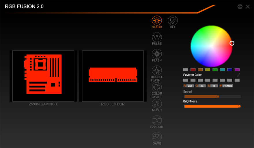 이번에는 앞서 제품박스 표기에서 확인한 각 메인보드 제조사들의 RGB Sync 그러니깐 ASUS AURA Sync, Gigabyte RGB Fusion 2.0, MSI Mistic Light Sync, ASRock POLYCHROME Sync 4대 메이저 메인보드의 RGB Sync 지원 언급을 했는데, 실제로, Gigabyte 메인보드에서 ARES RGB DDR4를 사용해보면, RGB Fusion 2.0과 RGB Sync가 연동되어 다양한 LED Mode로 작동되는 것을 확인할 수 있습니다.